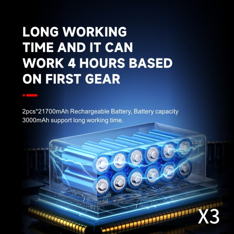 3. Three-speed speed adjustment: first gear strong wind, second gear hurricane, third gear super hurricane, wind force can reach level 16
